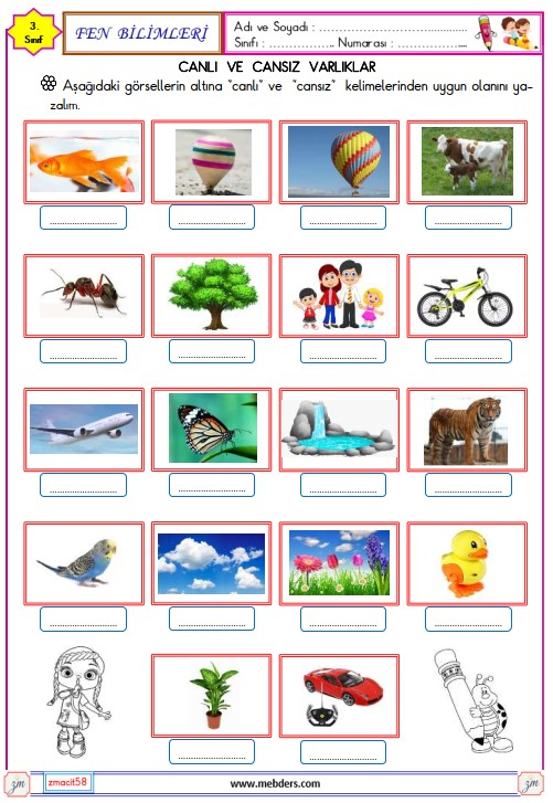 3. Sınıf Fen Bilimleri Canlı ve Cansız Varlıklar Etkinliği
