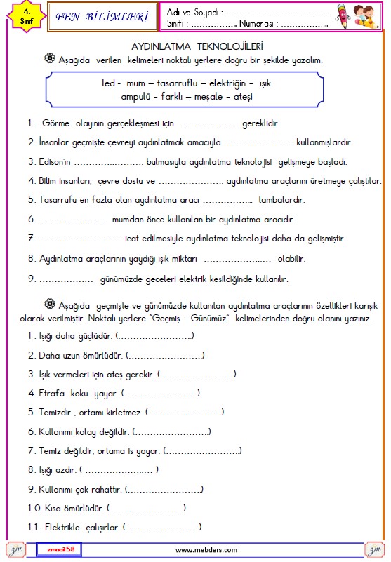 4. Sınıf Fen Bilimleri Aydınlatma Teknolojileri Etkinliği 2