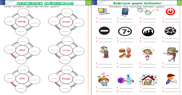 1.Sınıf Türkçe Sözcükte Çağrışım Yapan Kelimeler-2