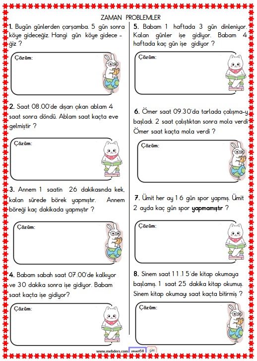 2. Sınıf Matematik Zaman Problemleri Etkinliği 5