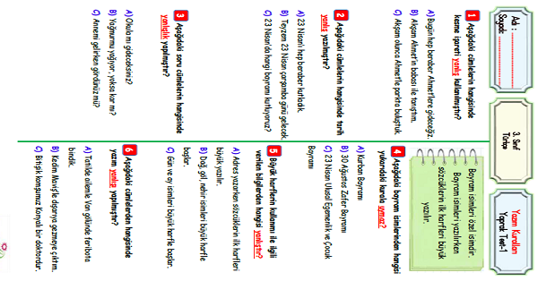 3.Sınıf Türkçe Yazım Kuralları Yaprak Test-1