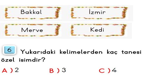 2.Sınıf Türkçe Özel İsimler-Test-1
