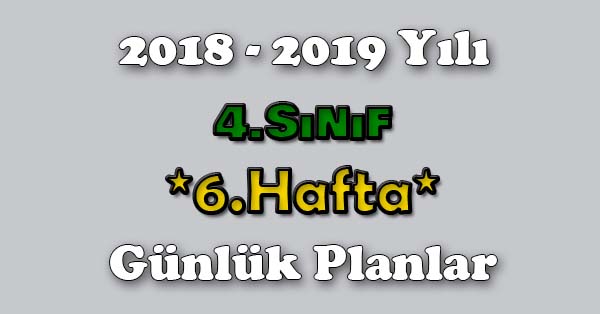 2018 - 2019 Yılı 4.Sınıf Tüm Dersler 6. hafta günlük planlarıdır. Talep geldiği sürece paylaşıma devam edilecektir.