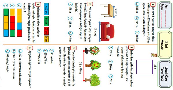 3.Sınıf Matematik Uzunluk Ölçme Yaprak Test-3