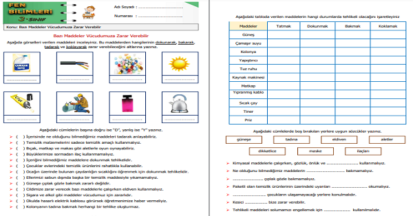 3.Sınıf Fen Bilimleri Bazı Maddeler Vücudumuza Zarar Verebilir Etkinliği