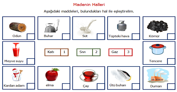3.Sınıf Fen Bilimler Maddenin Halleri Etkinliği
