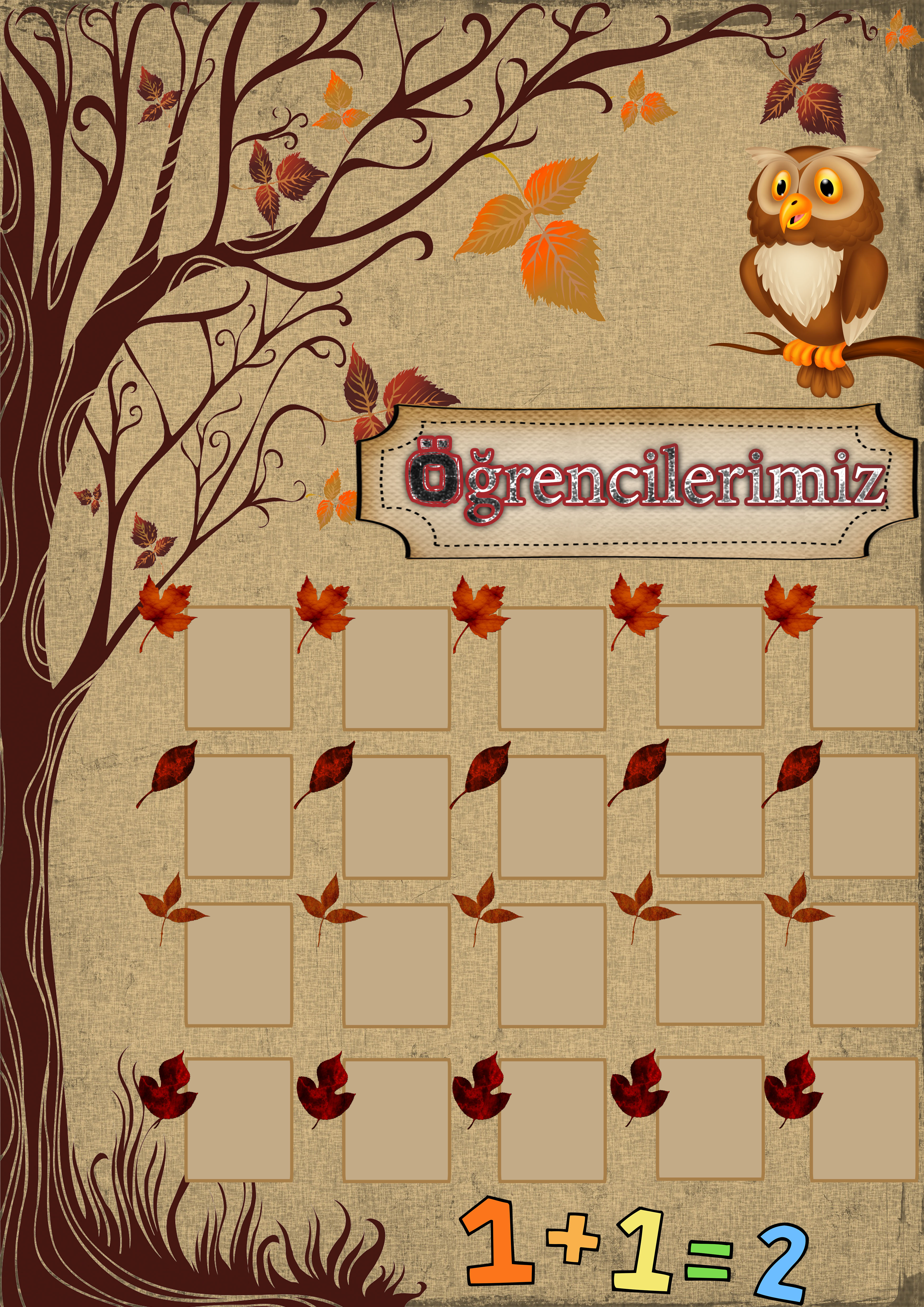 Model 43, Sonbahar temalı fotoğraf eklemeli kapı süslemesi - 20 öğrenciliktir. A3 boyutundaki yüksek çözünürlük afiş için dosyayı indiriniz. Kendi öğrenci sayınıza uygun bu model kapı süsü sitemizde yoksa ayrıca istek yapabilirsiniz.