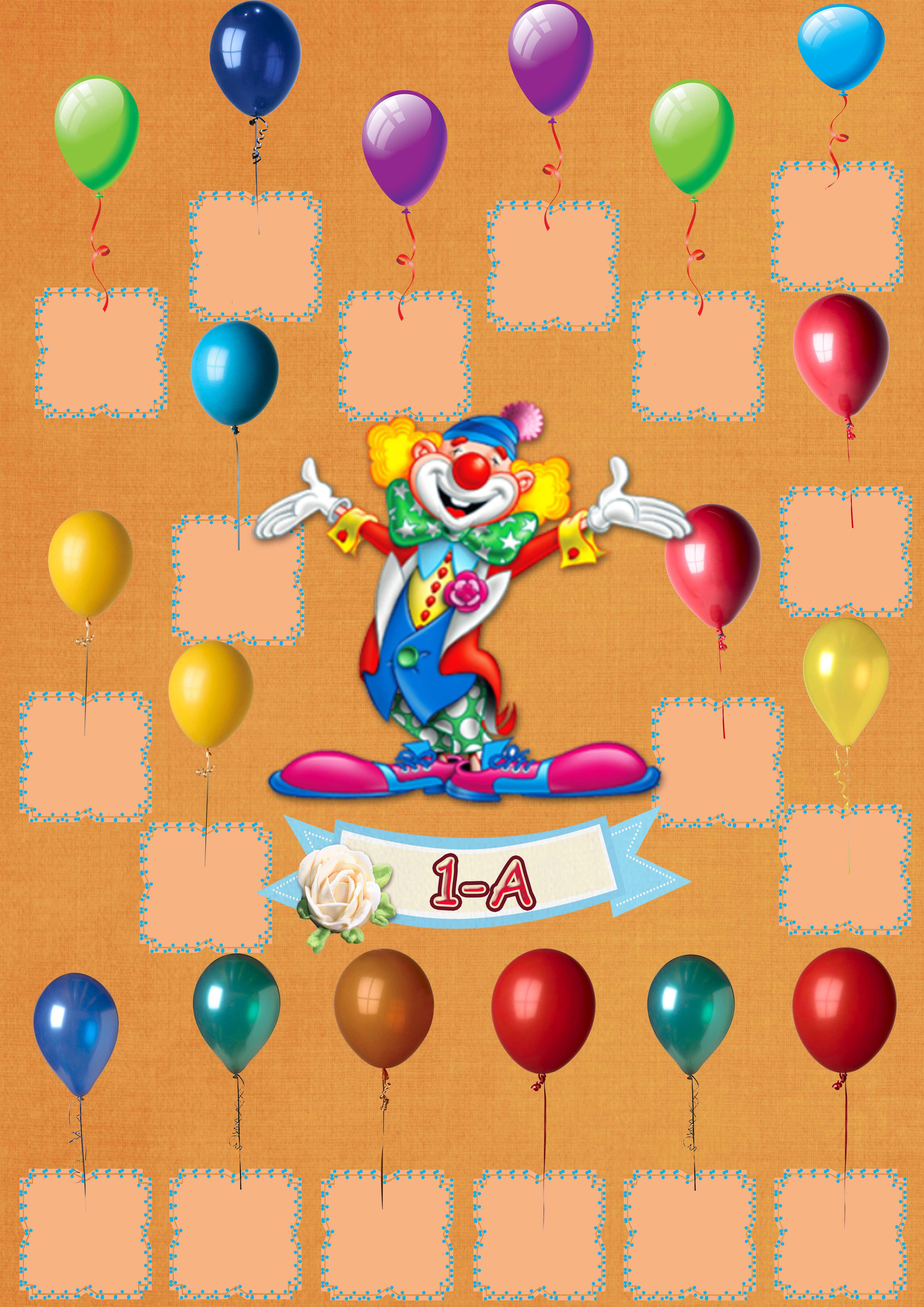 Model 49, 1A şubesi için palyaçolu fotoğraf eklemeli kapı süslemesi - 18 öğrenciliktir. A3 boyutundaki yüksek çözünürlük afiş için dosyayı indiriniz. Kendi öğrenci sayınıza uygun bu model kapı süsü sitemizde yoksa ayrıca istek yapabilirsiniz.