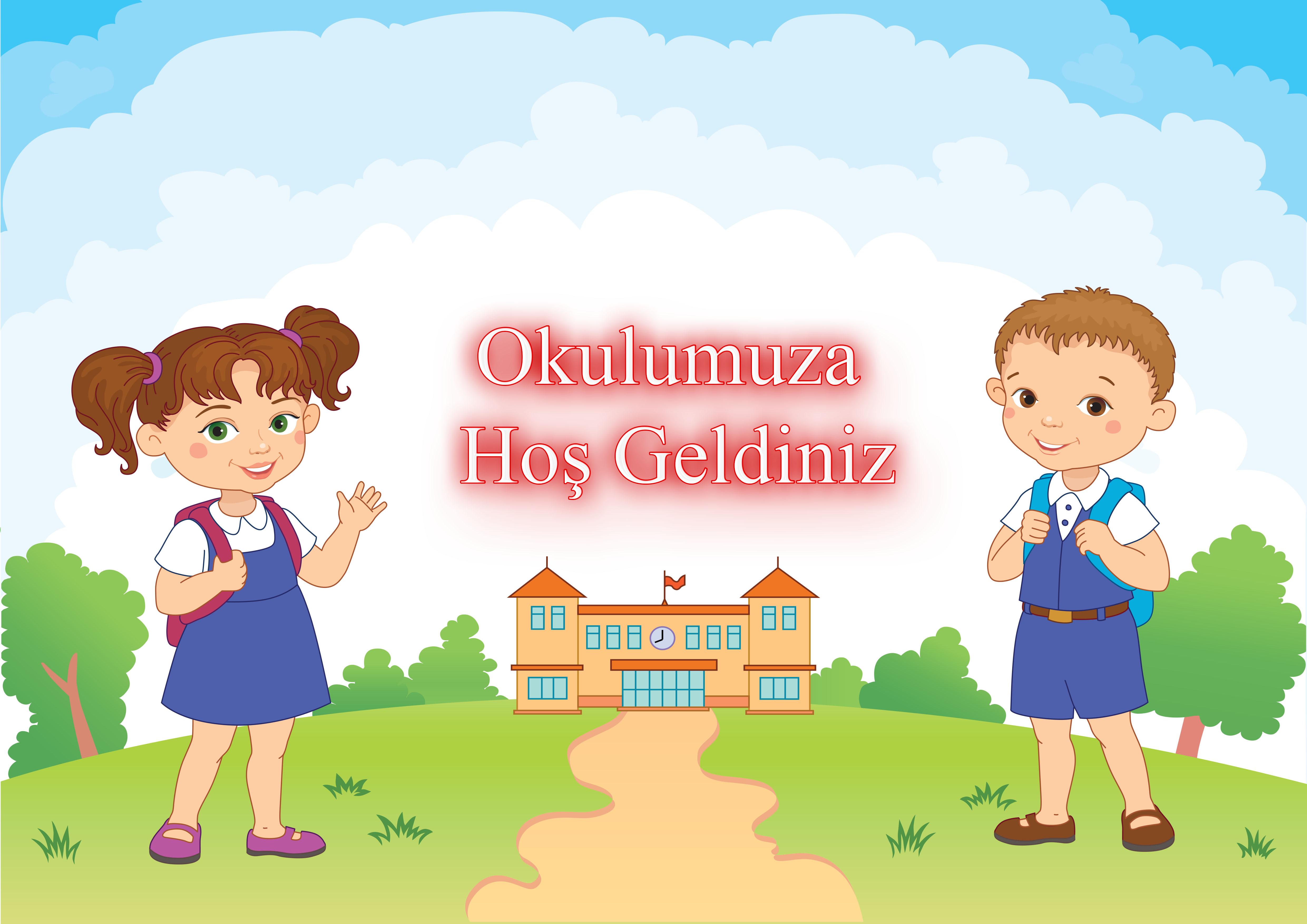 Model 52, Çocuklarla okulumuza hoş geldiniz kapı süslemesidir. A3 boyutundaki yüksek çözünürlük afiş için dosyayı indiriniz.