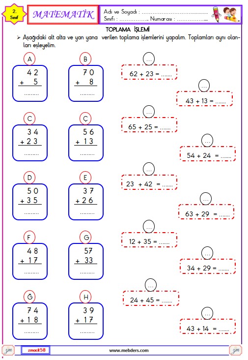 2. Sınıf Matematik Toplama İşlemi Etkinliği 2
