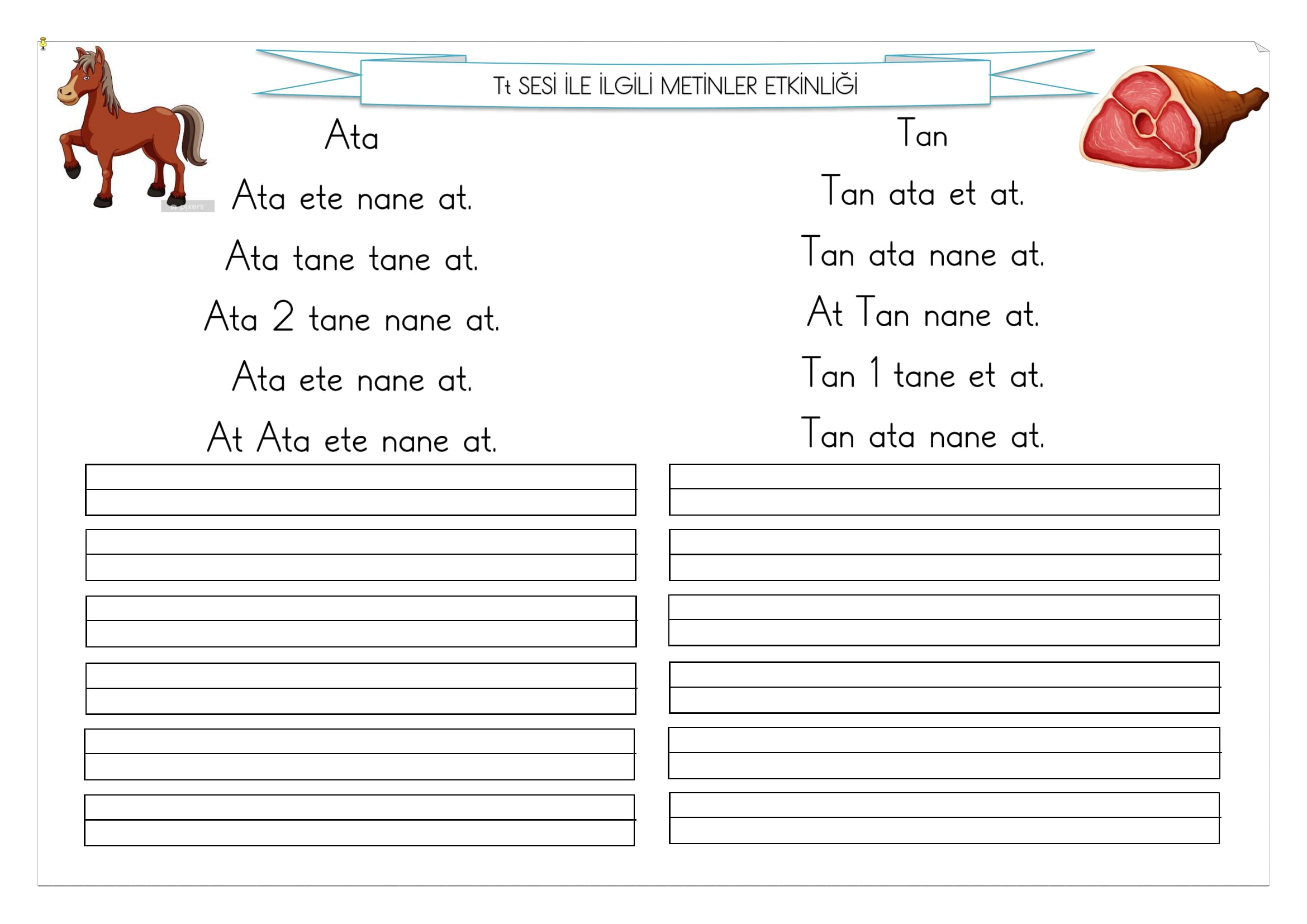 1.Sınıf İlk Okuma Yazma T-t Sesi İle İlgili Metinler Etkinliği