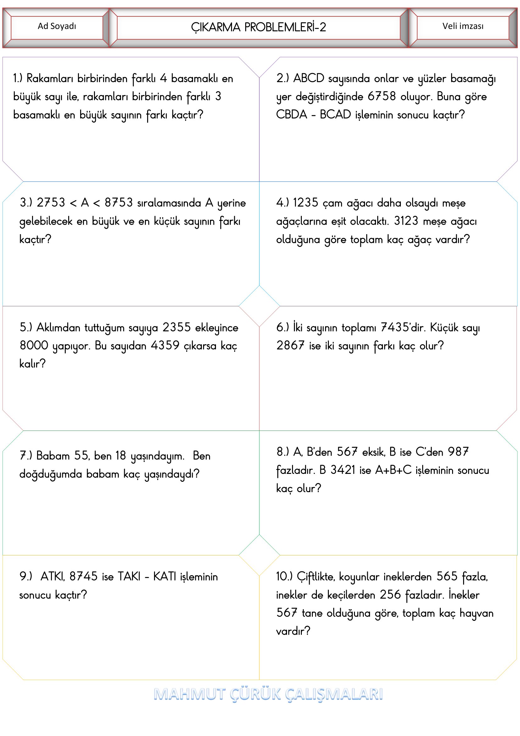 4.Sınıf - Matematik Çıkarma Problemleri-2