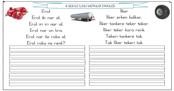 1.Sınıf R Sesi Metinler Etkinliği