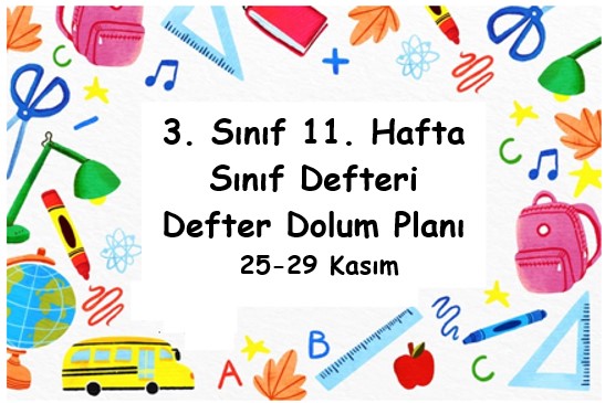 2024-2025 Eğitim Öğretim Yılı 3. Sınıf 11. Hafta (25- 29 Kasım ) Defter Dolum Planı (Türkçe İlke)