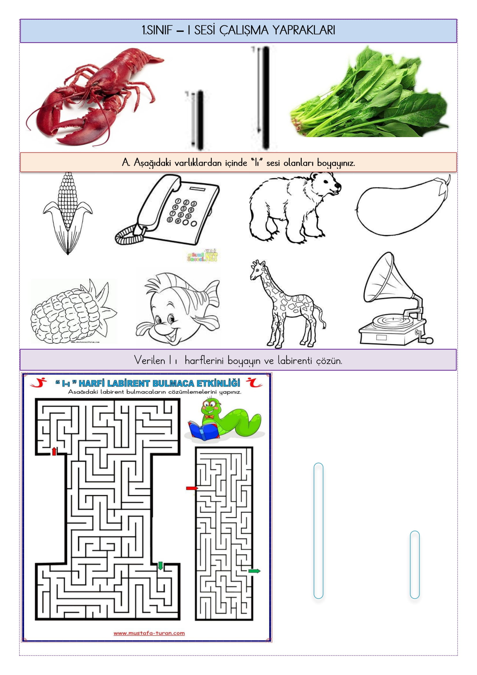 1.Sınıf İlk Okuma Yazma I Sesi Çalışma Yaprakları
