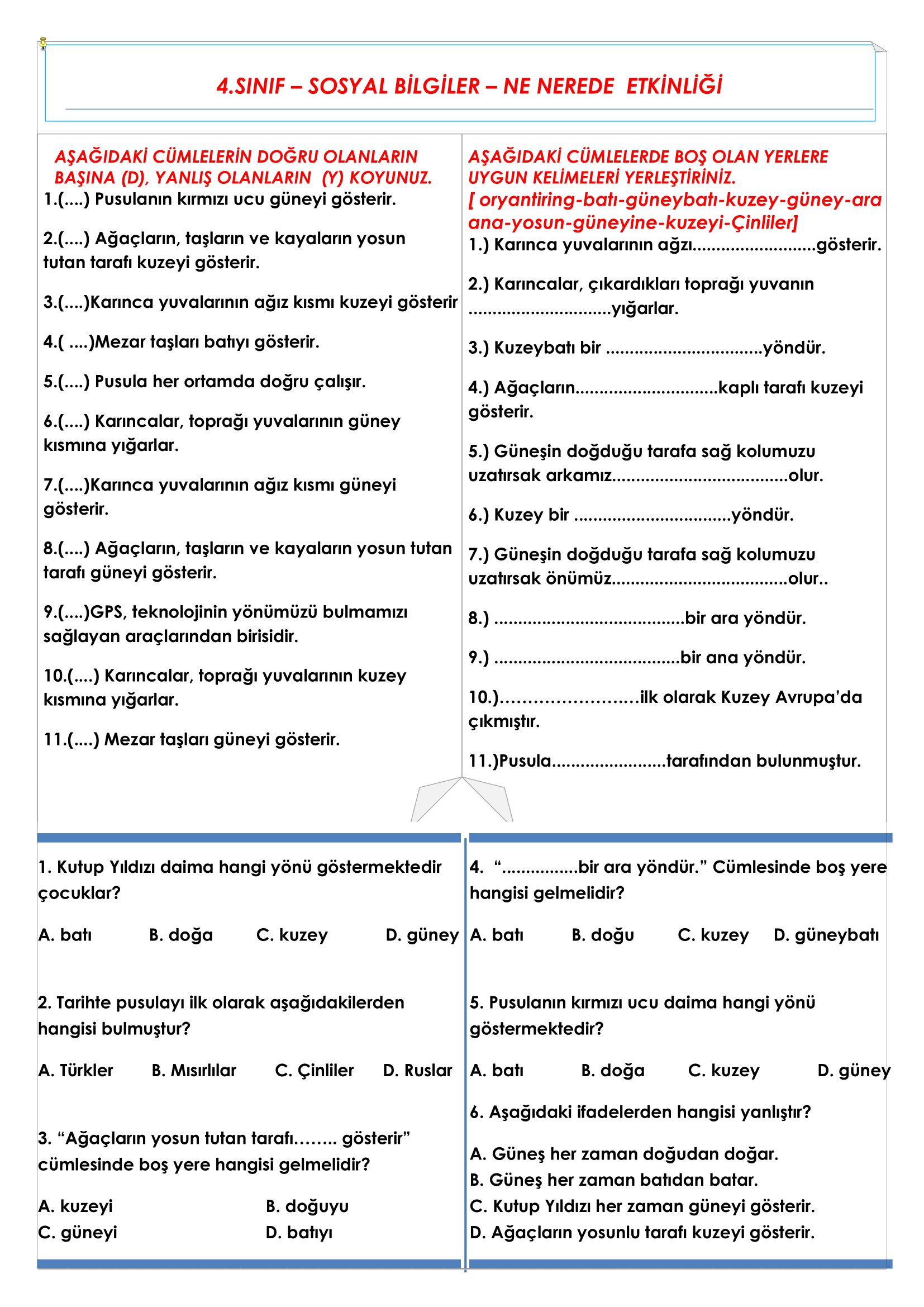 4.Sınıf - Sosyal Bilgiler - Ne Nerede Etkinliği