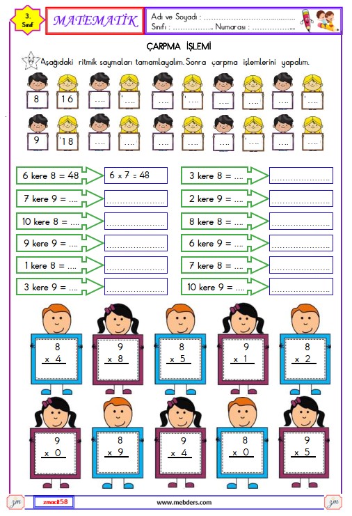 3. Sınıf Matematik Çarpma İşlemi Etkinliği 9