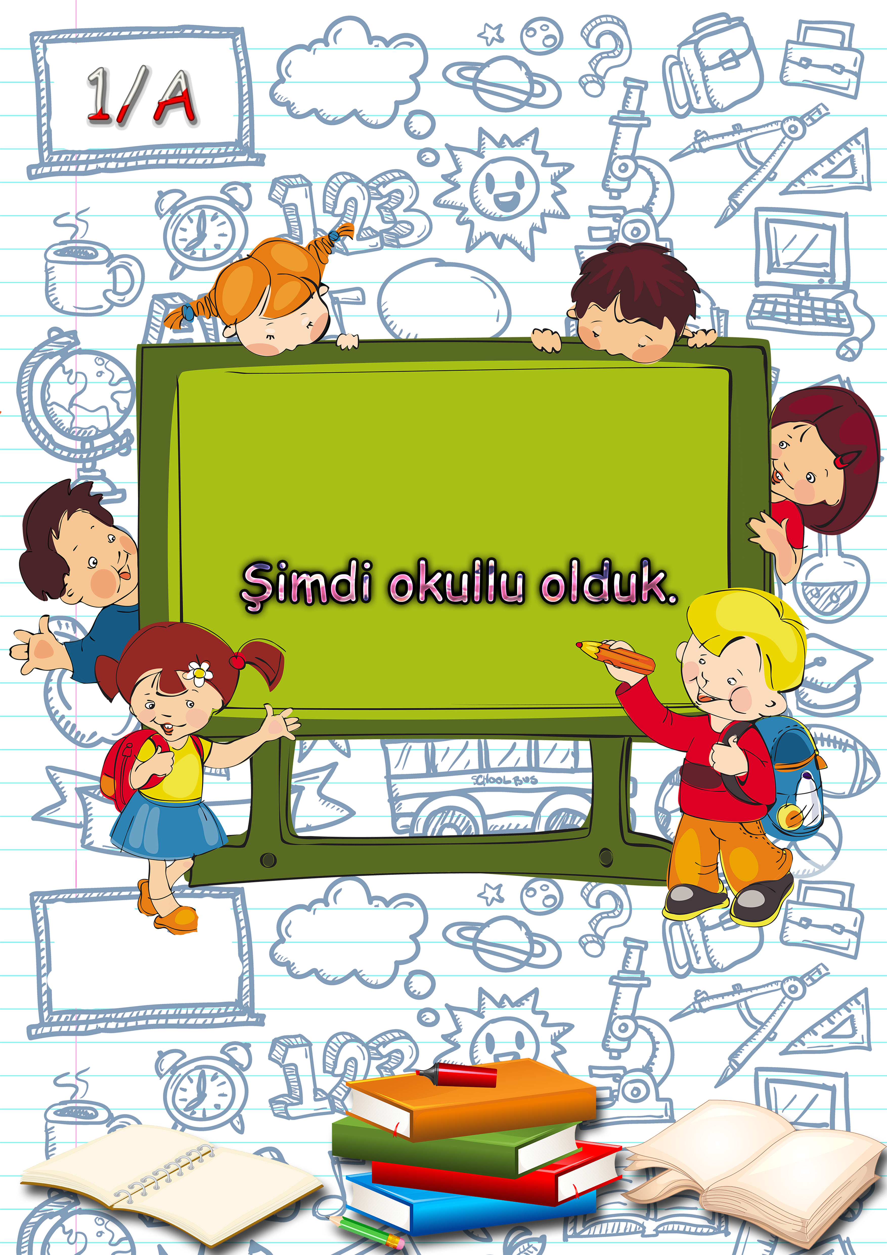 Model 23, 1C şubesi için eğitim araç-gereçleriyle şimdi okullu olduk isimli kapı süslemesi