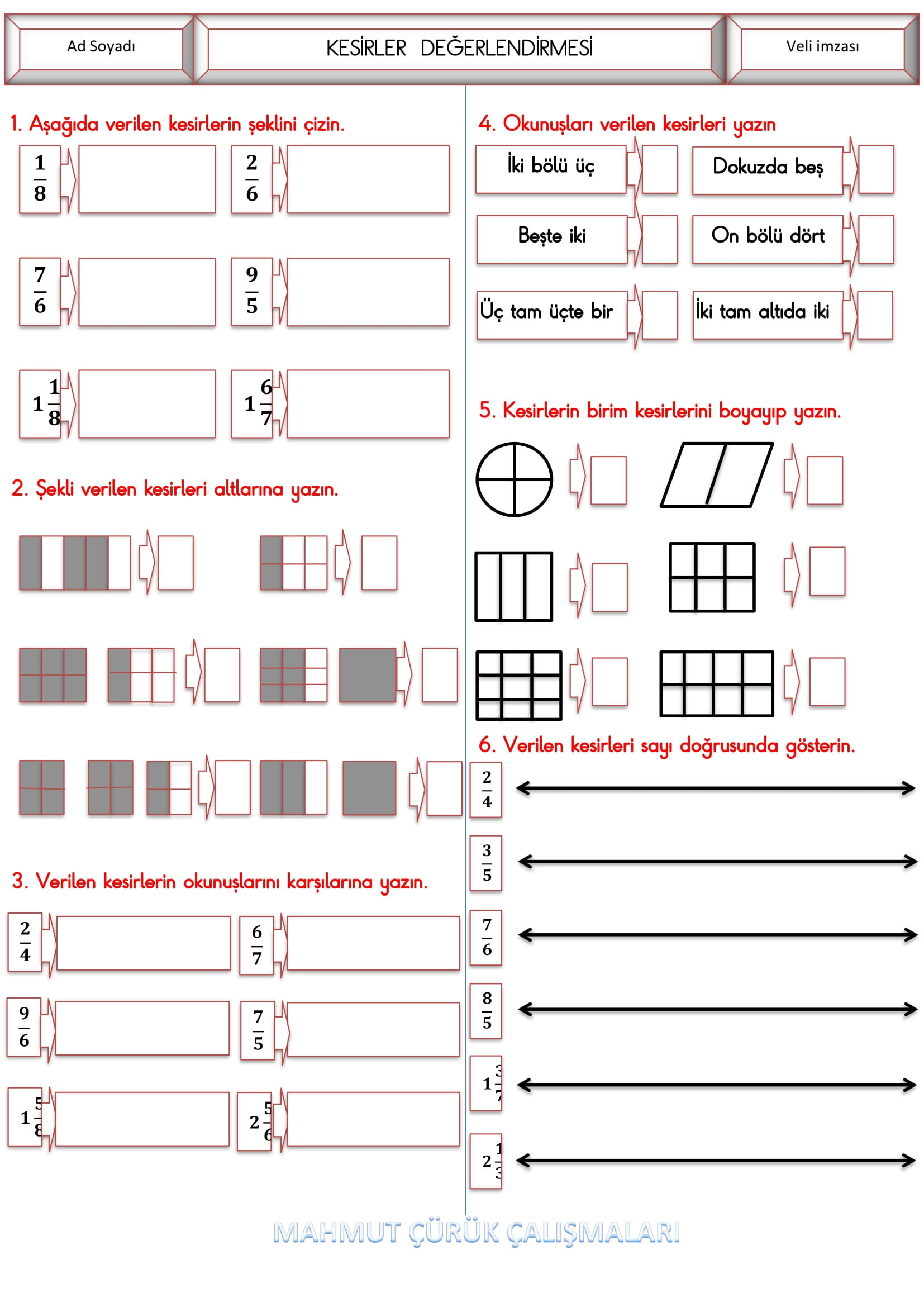 4.Sınıf - Matematik Kesirler Değerlendirmesi