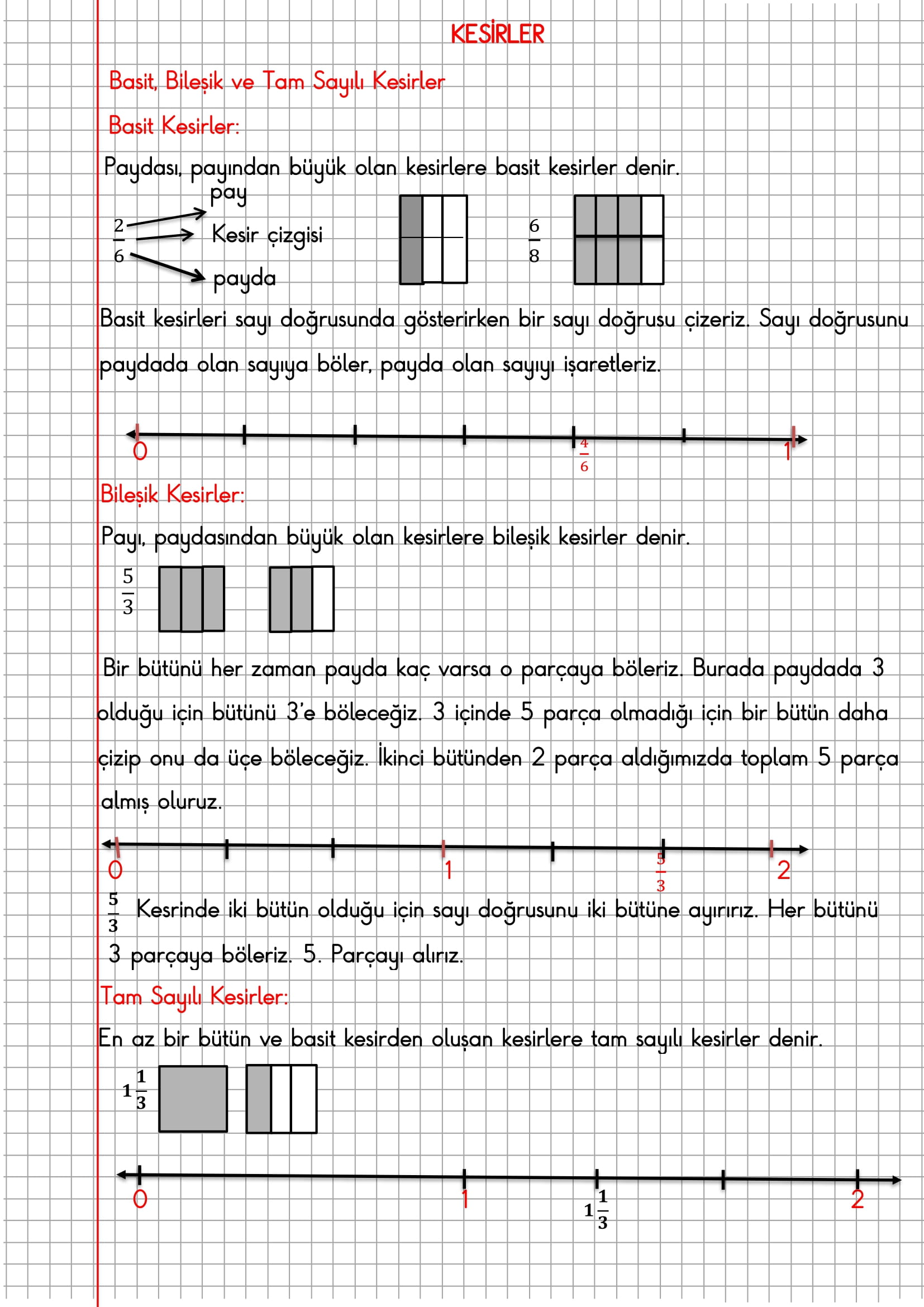 4.Sınıf Matematik Kareli Defterde Kesirler Konu Anlatımı