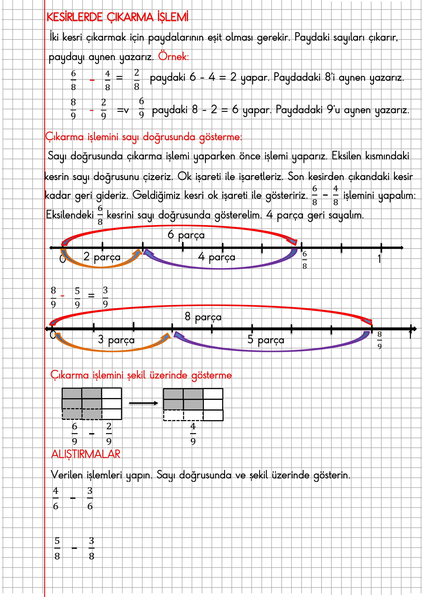 4.Sınıf Matematik Kareli Defterde Kesirlerde Çıkarma İşlemi Konu Anlatımı