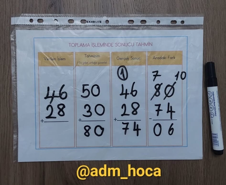 2.Sınıf Matematik Toplamı Tahmin Etme Yaz Sil Etkinliği