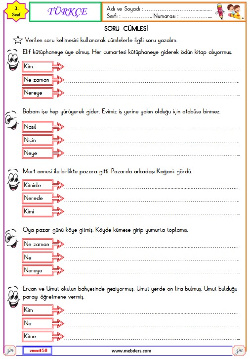 3. Sınıf Türkçe Soru Cümlesi Etkinliği