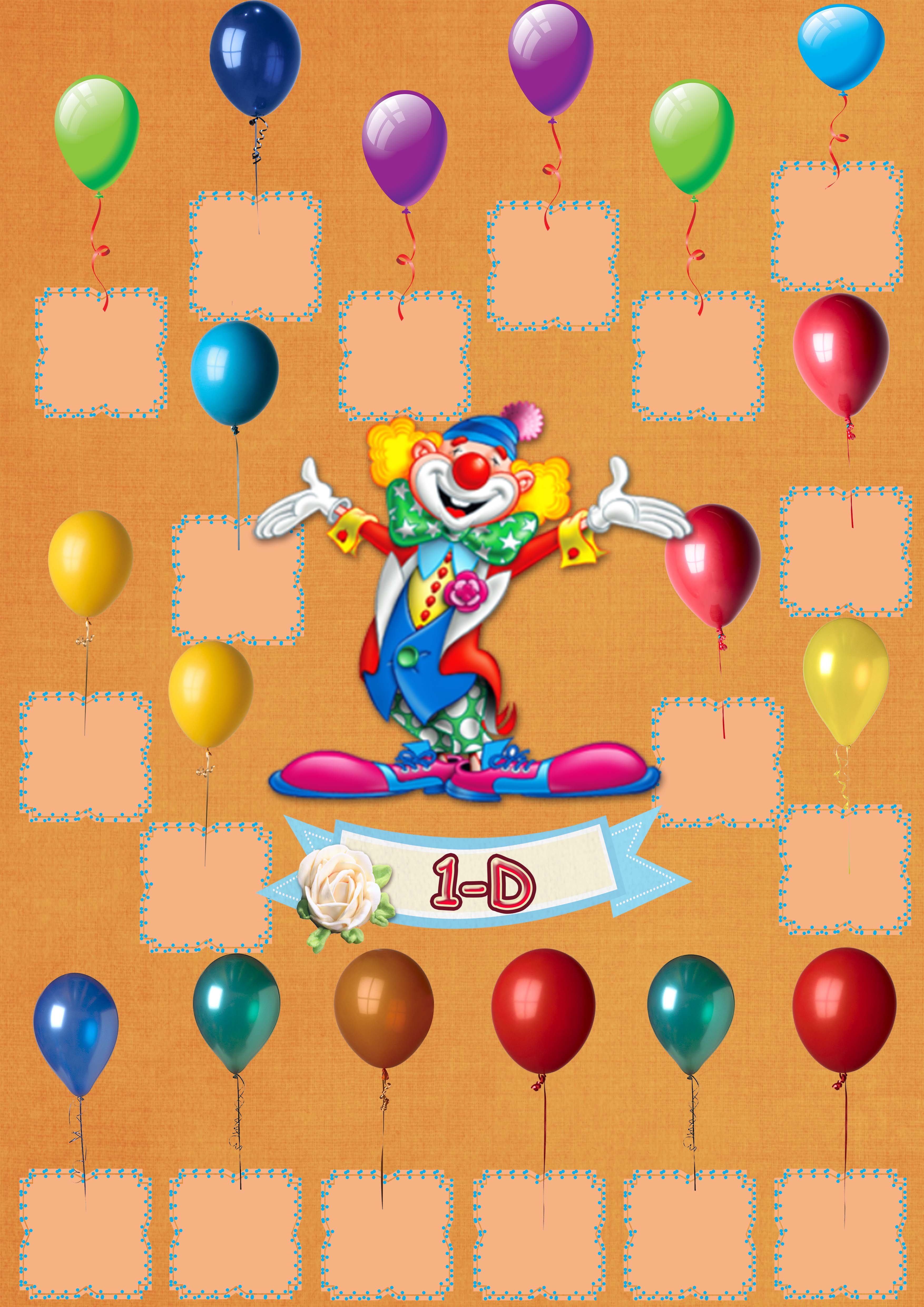 Model 49, 1D şubesi için palyaçolu, fotoğraf eklemeli kapı süslemesi - 18 öğrenciliktir. A3 boyutundaki yüksek çözünürlük afiş için dosyayı indiriniz. Kendi öğrenci sayınıza uygun bu model kapı süsü sitemizde yoksa ayrıca istek yapabilirsiniz.
