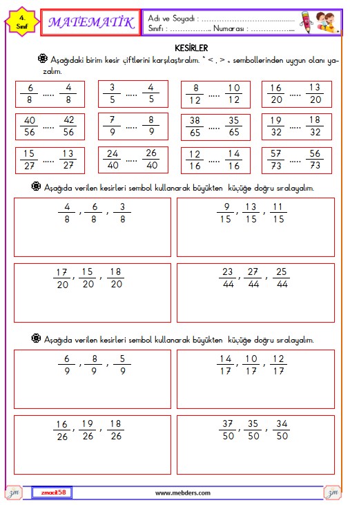 4. Sınıf Matematik Kesirler Etkinliği 17