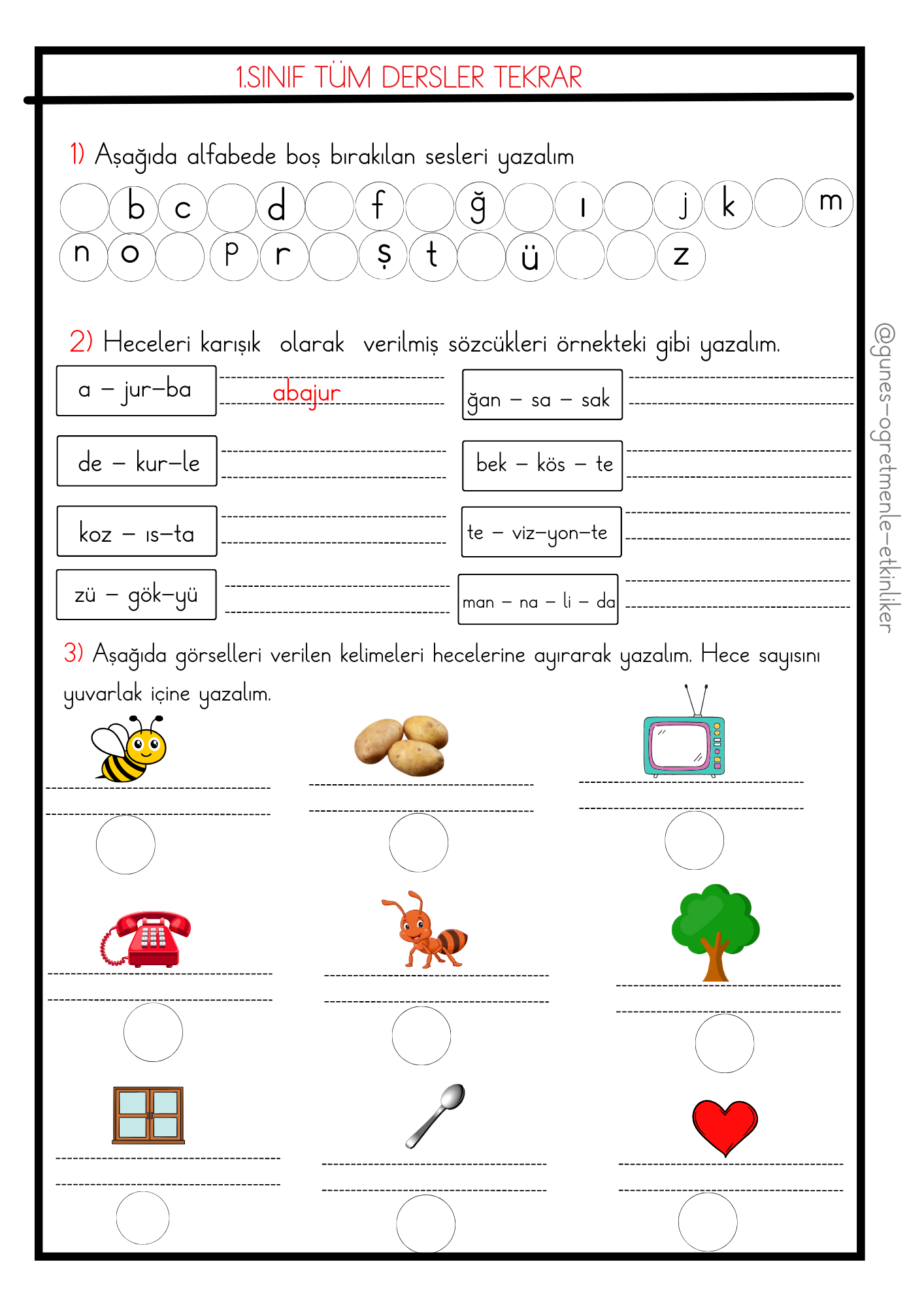 1. Sınıf İlk Okuma Yazma B Sesi GÖRSEL DİKTE