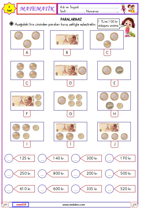 3. Sınıf Matematik Paralarımız Etkinliği 5