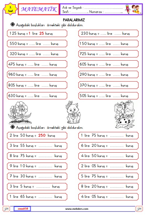 3. Sınıf Matematik Paralarımız Etkinliği 6
