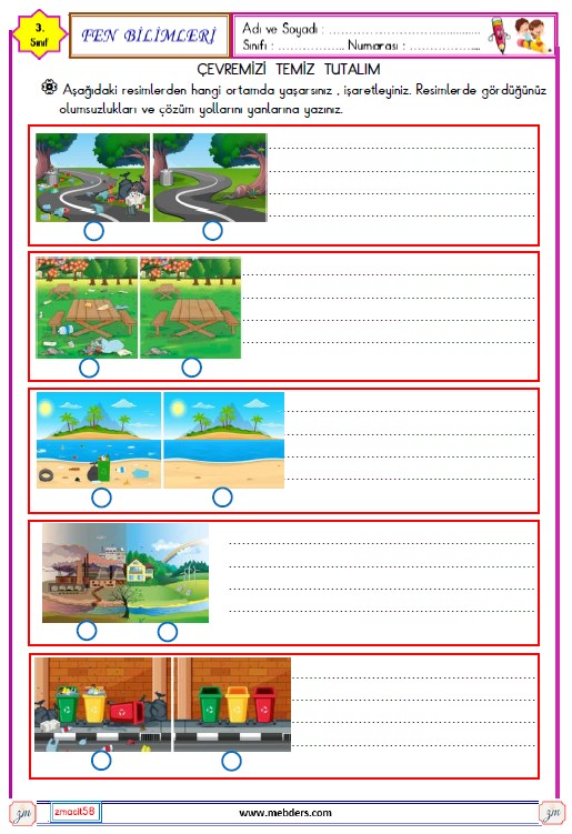 3. Sınıf Fen Bilimleri Çevremizi Temiz Tutalım Etkinliği 2