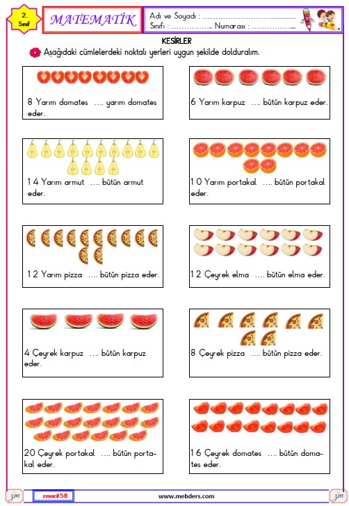 2. Sınıf Matematik Kesirler Etkinliği 8