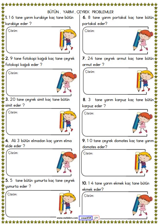 2. Sınıf Matematik Kesirler ile İlgili Problemler Etkinliği 6