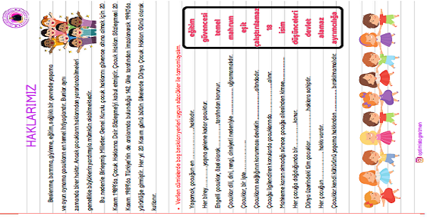 4. Sınıf Sosyal Bilgiler Haklarımız