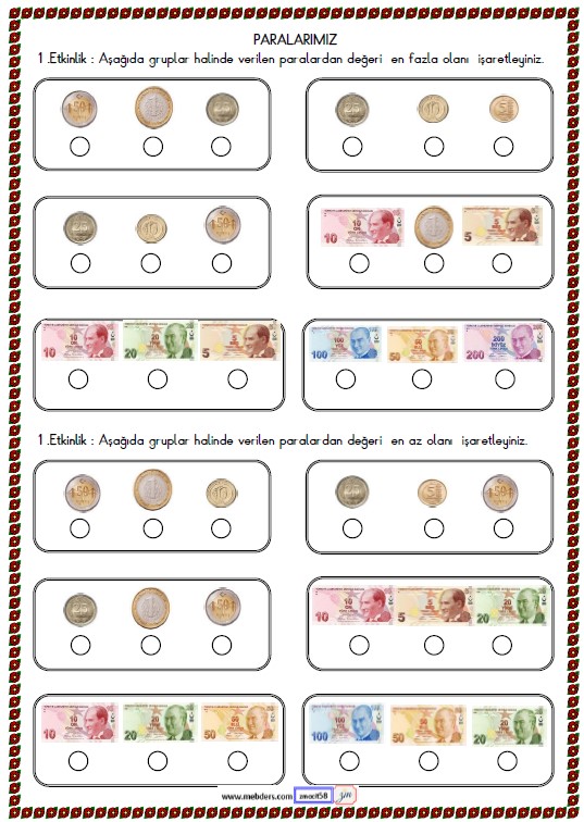 2. Sınıf Matematik Paralarımız Etkinliği 15