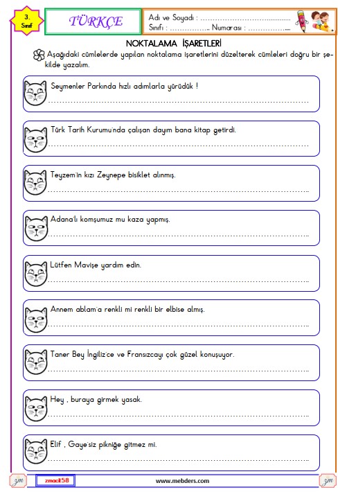3. Sınıf Türkçe Noktalama İşaretleri Etkinliği 9