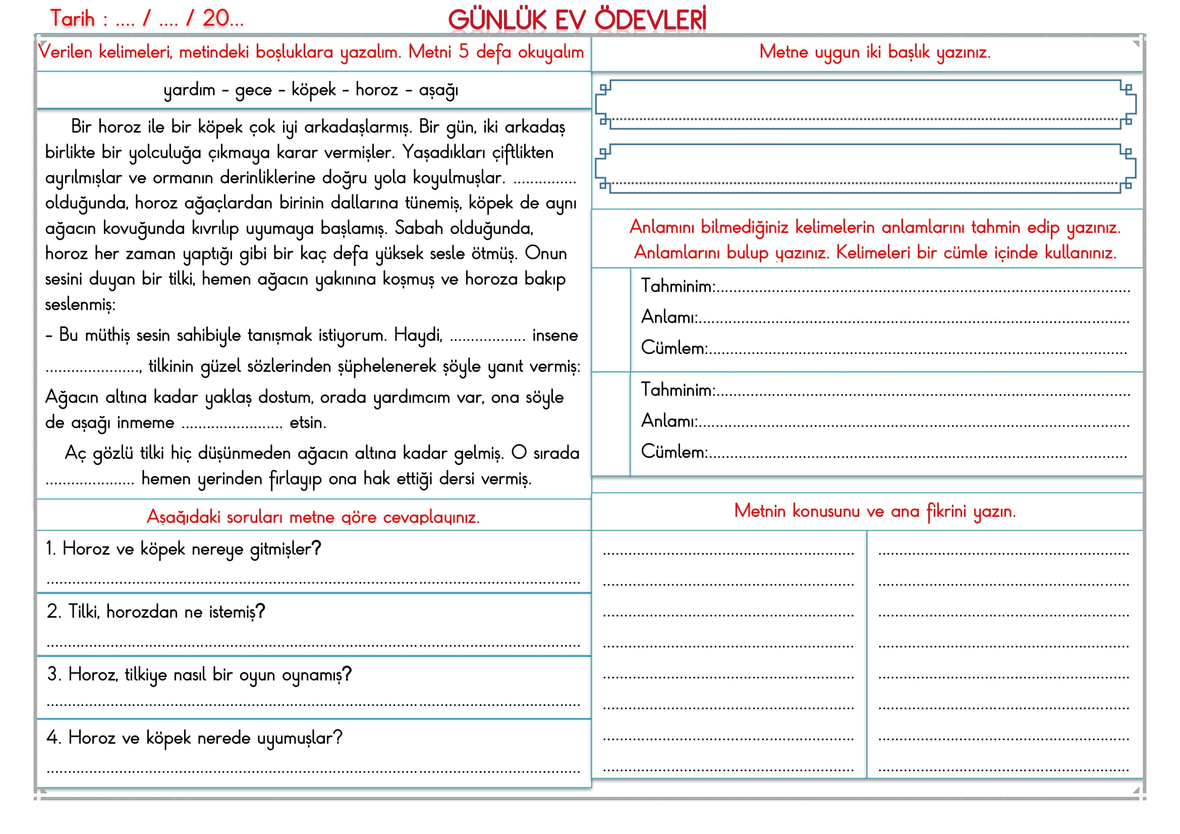 1.Sınıf Z Sesi Okuma Anlama Etkinlikleri