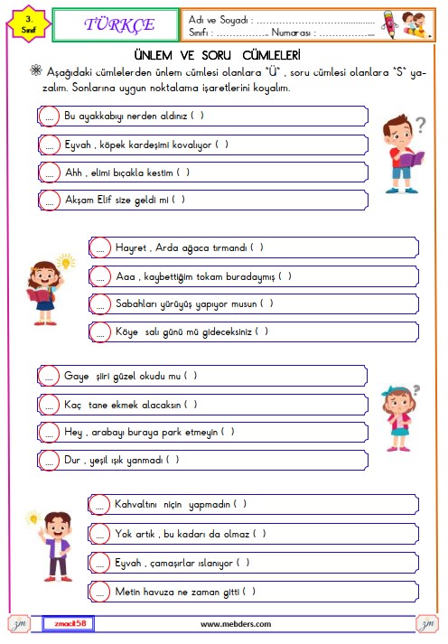 3. Sınıf Türkçe Ünlem ve Soru Cümlesi Etkinliği 4