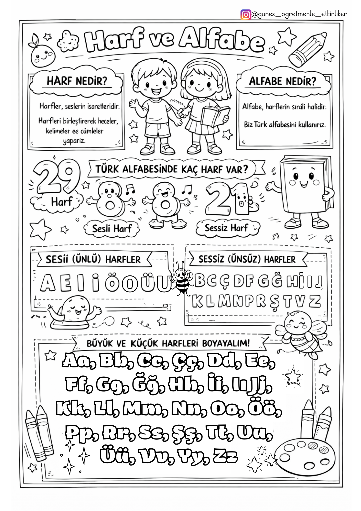 1.Sınıf Türkçe Alfabe Boyama ve Özeti