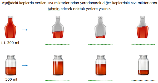 4.Sınıf Matematik Sıvı Ölçme (Bir Kaptaki Sıvı Miktarını Tahmin Etme) Etkinliği 1