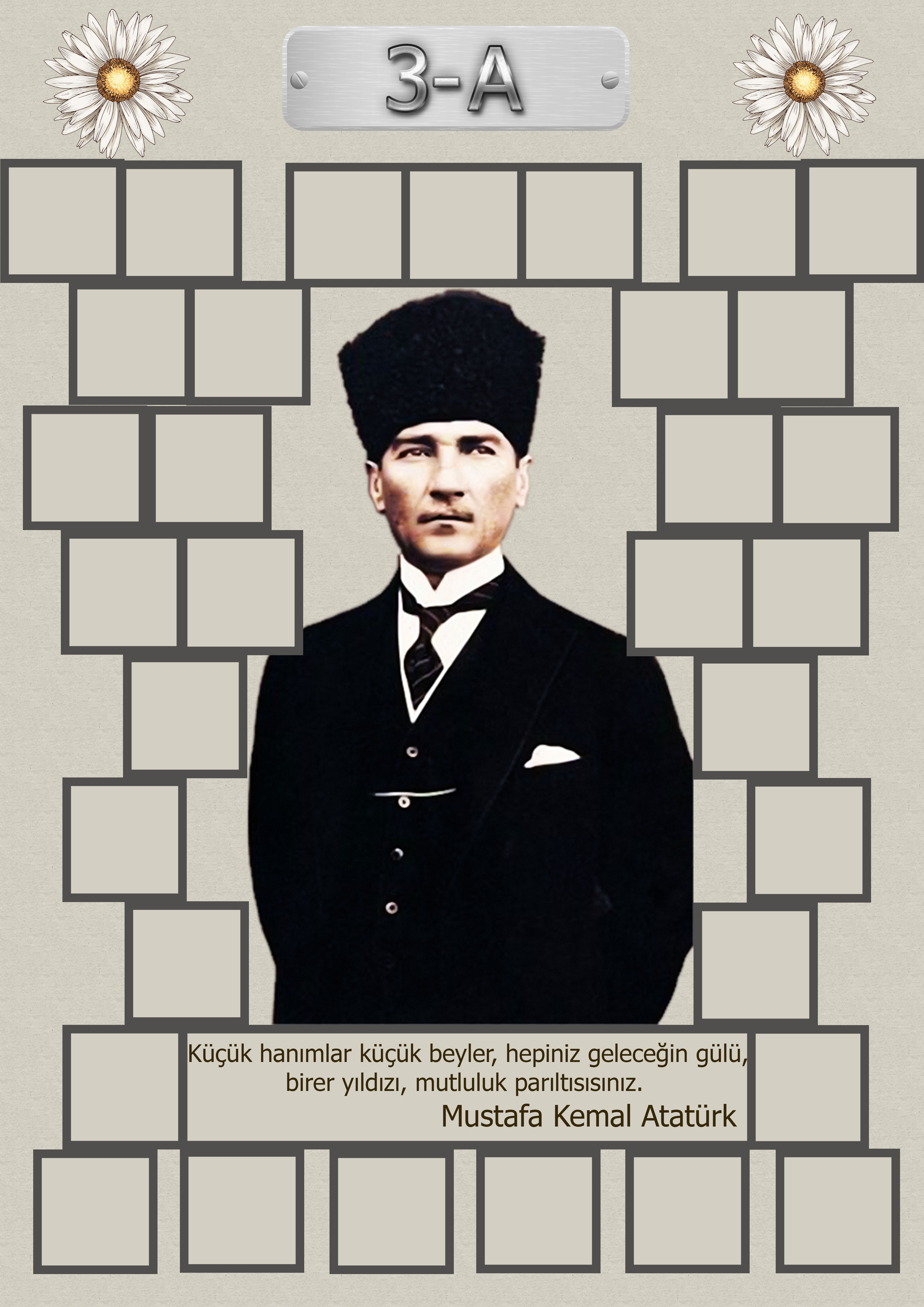 Model 15, 3A şubesi için Atatürk temalı, fotoğraf eklemeli kapı süslemesi - 33 öğrencilik