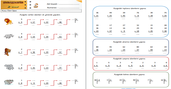2.Sınıf Matematik Karışık Alıştırmalar (Dört İşlem) Etkinliği