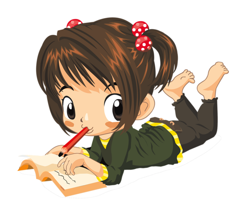 Clipart yere uzanmış yazı yazan kız çocuğu resmi png