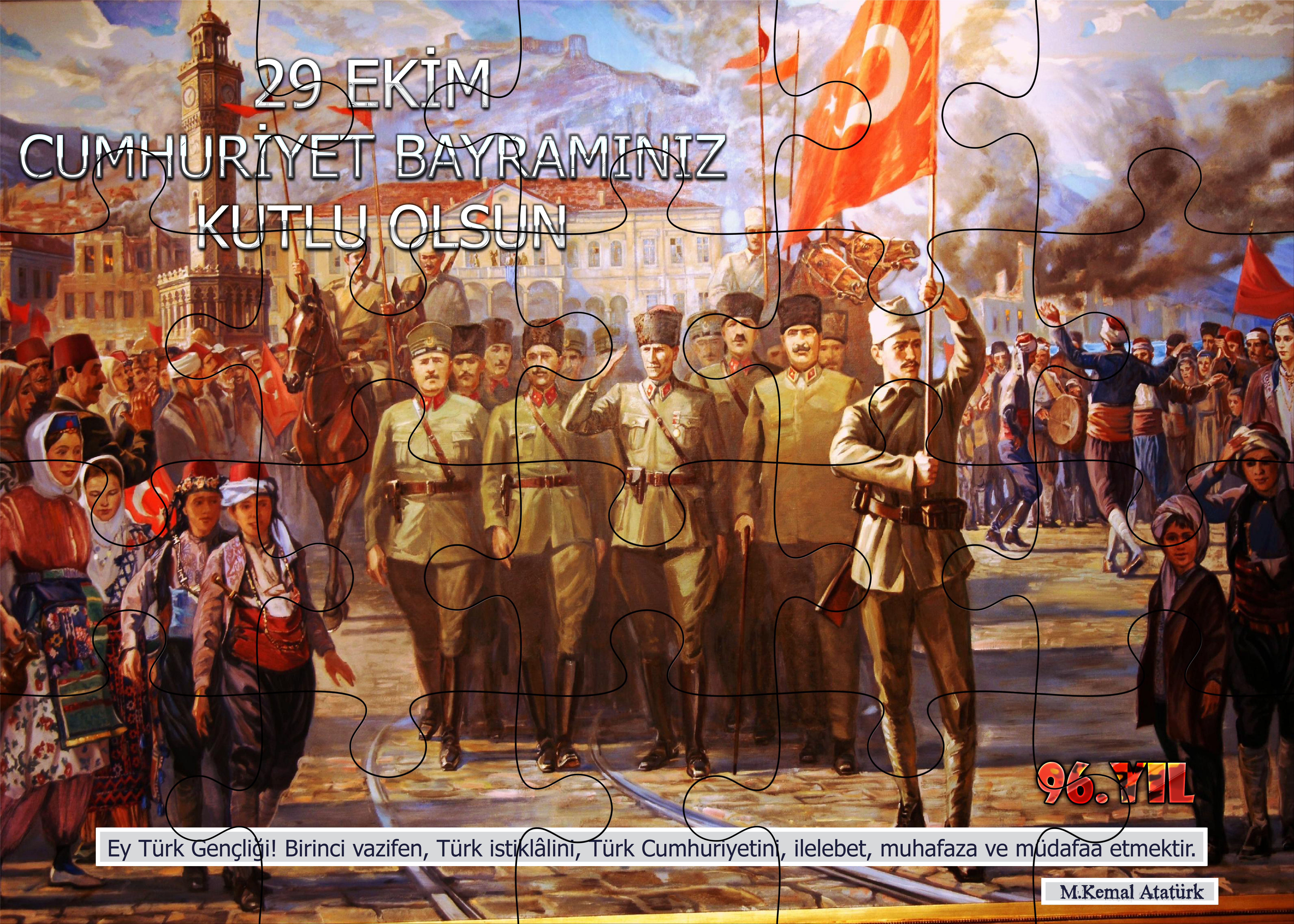 Cumhuriyet Panosu Puzzle Poster sitemize eklenmiştir. 50x70 çözünürlüğünde 20 parça olarak hazırlanmıştır. JPG dosyayı indirebilirsiniz..