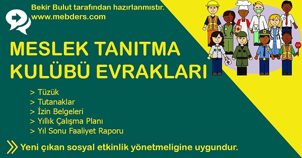 Yeni çıkan sosyal etkinlik yönetmeliğine uygun meslek tanıtma kulübü evrakları sitemize eklenmiştir. Word dosyayı indirebilirsiniz..