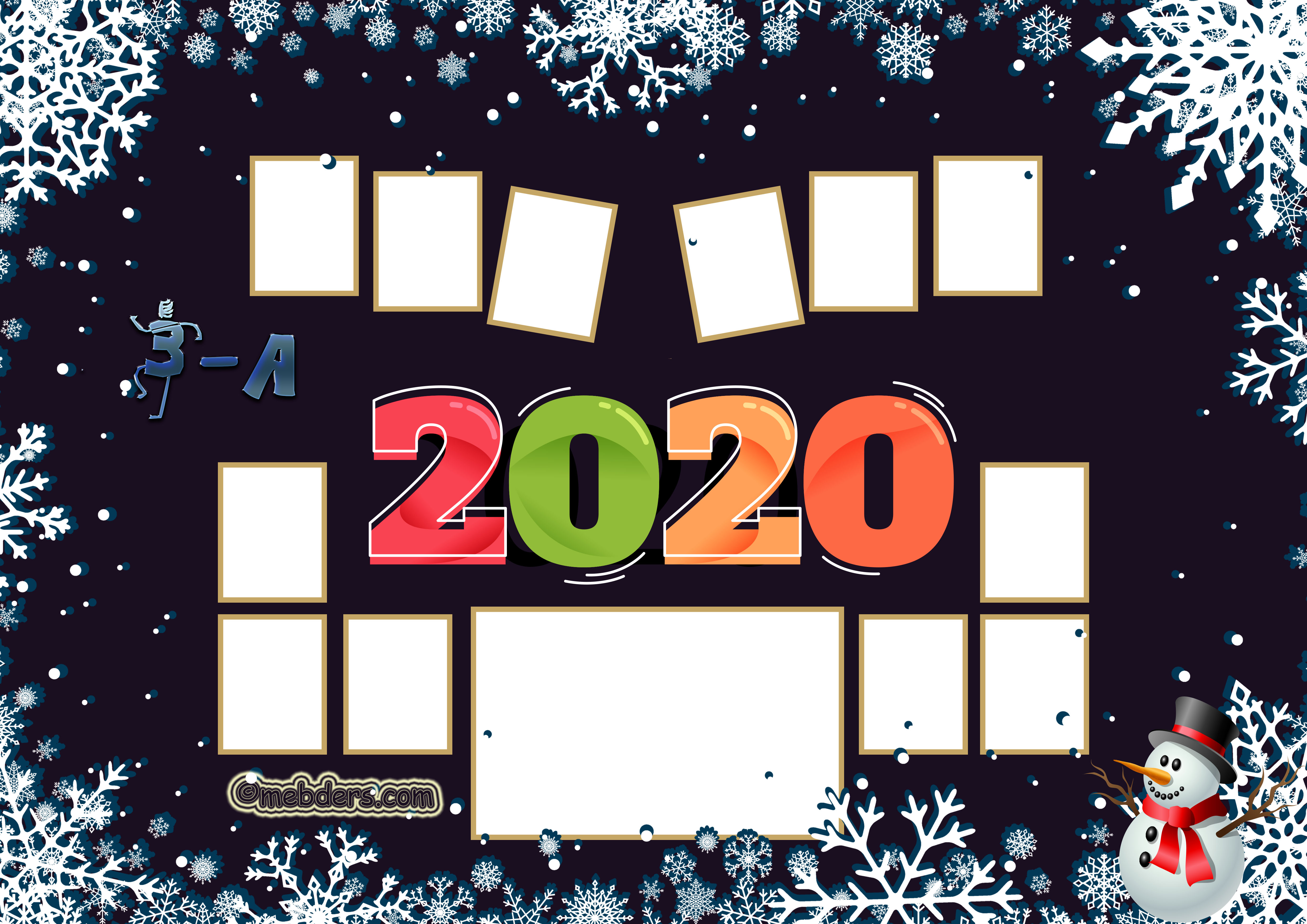 3A Sınıfı için 2020 Yeni Yıl Temalı Fotoğraflı Afiş çalışmasıdır. A3 boyutunda hazırlanmıştır. 12 öğrenciliktir. Kendi şubeniz için istek yapabilirsiniz.