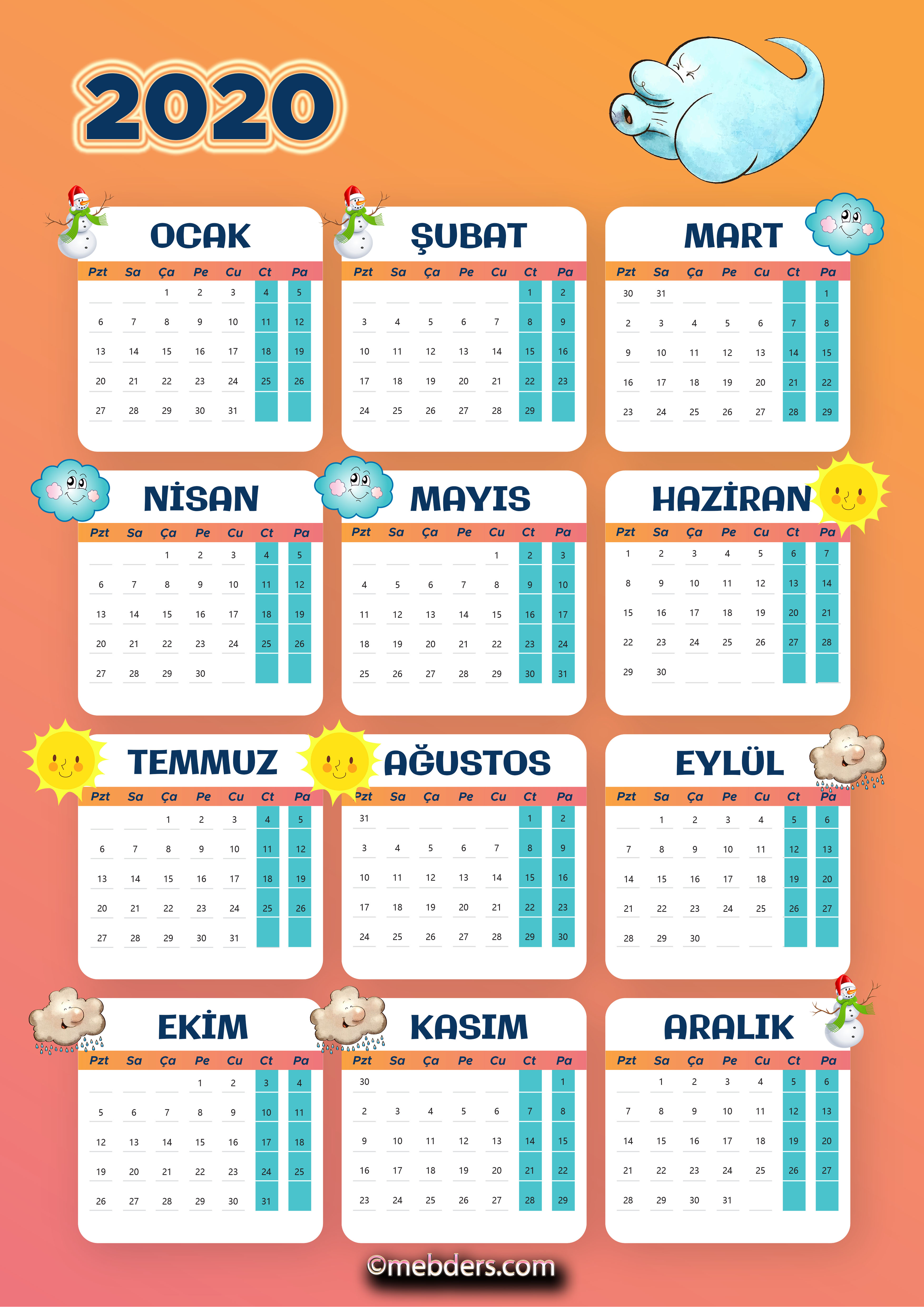 Mevsim İkonlu 2020 takvimi sitemize eklenmiştir. Takvim A3 boyutunda hazırlanmıştır.
