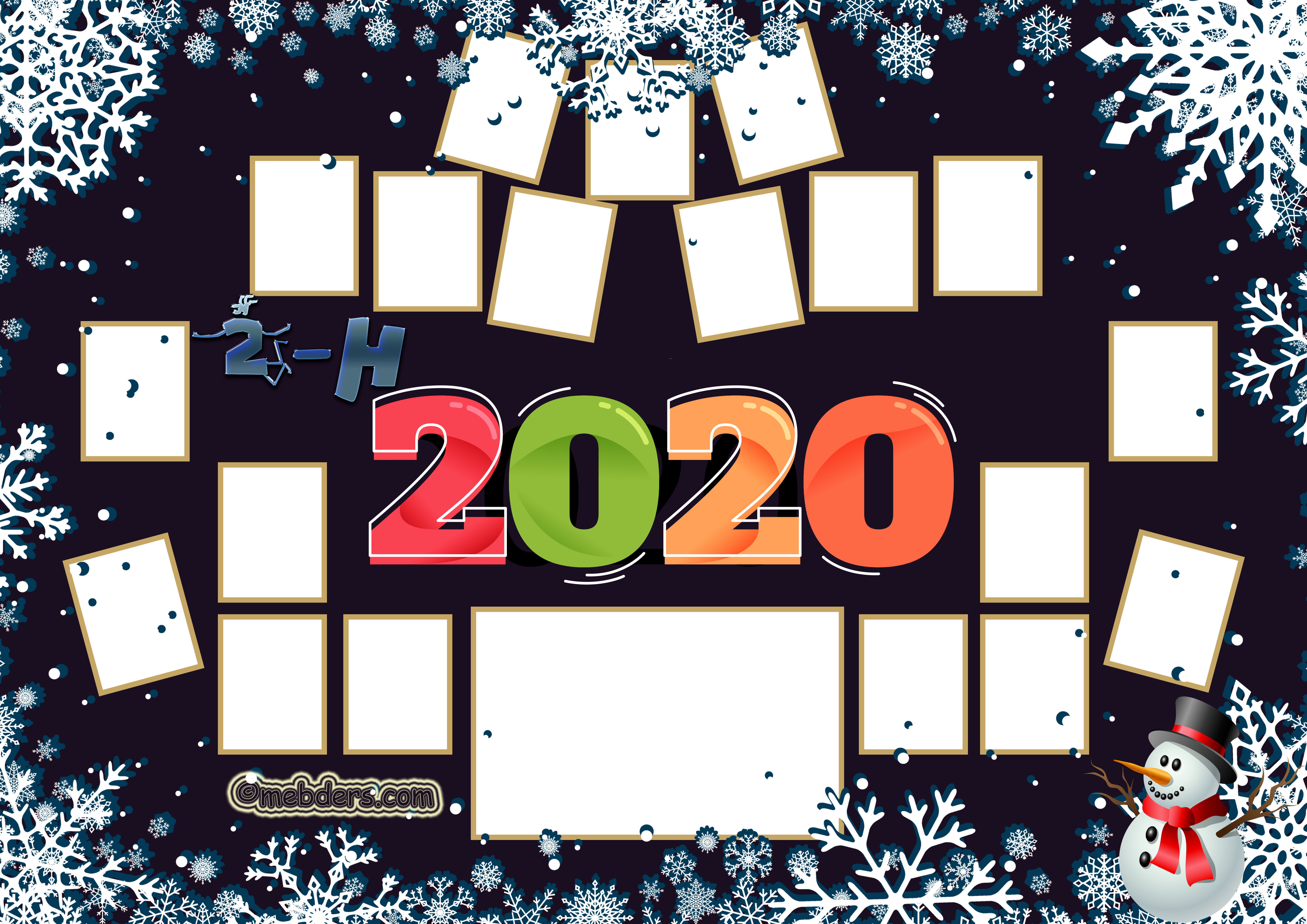 2H Sınıfı için 2020 Yeni Yıl Temalı Fotoğraflı Afiş çalışmasıdır. A3 boyutunda hazırlanmıştır. 19 öğrenciliktir. Kendi şubeniz için istek yapabilirsiniz.
